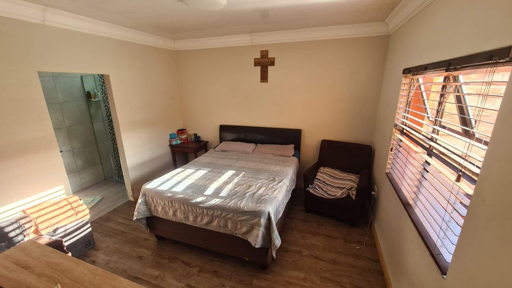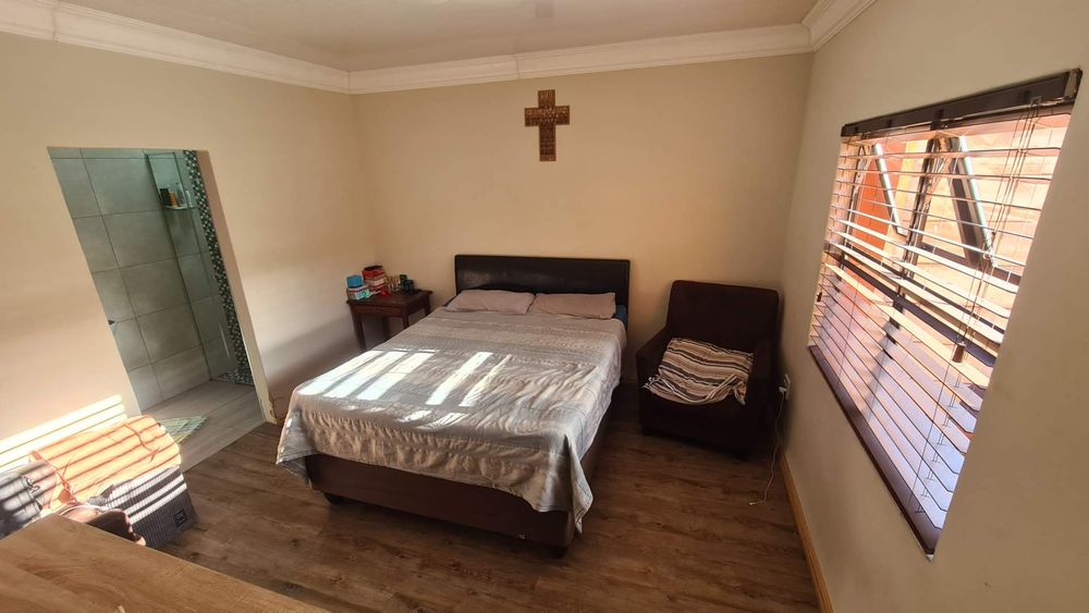Your peace of mind is assured with a secure yard, featuring an automated gate, safety gates on all doors, and burglar bars on the windows with a carport on the side of house. There's ample parking space for two or more cars, ensuring convenience for your household.
